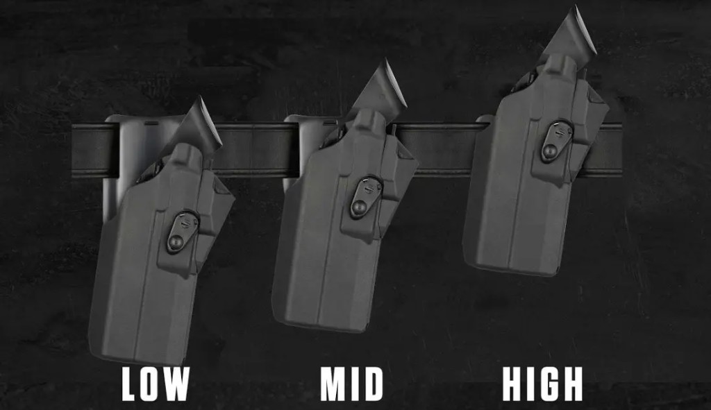 Dedicada à arma primária (ou secundária/pistola). O coldre deve permitir saque rápido e seguro. Mantenha a área à frente e atrás do coldre livre para evitar interferências.